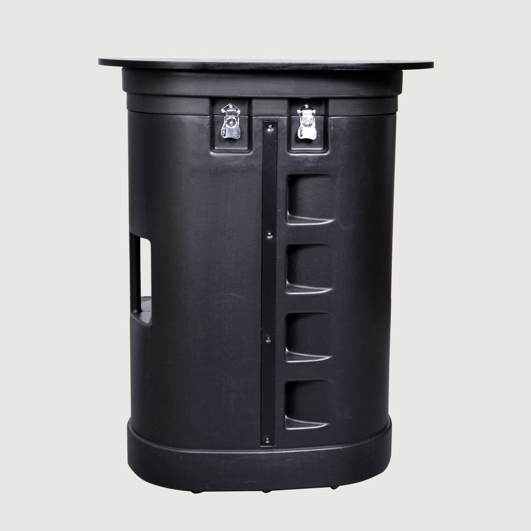 Stabile Promotheke, Rollcontainer und Werbefläche in einem. Der Thekenkoffer mit Tür ist in erster Linie für den Transport geeignet. Prospekte, Giveaways, kleineres Messezubehör und sogar unsere Popup Theke passen problemlos in das Innere des Thekenkoffers. Zudem kann eine bedruckte PolSol-Bespannung an den Koffer angebracht werden, wodurch der Thekenkoffer zur Promotheke umfunktioniert wird. Die abschließbare Türe an der Rückseite des Koffers ermöglicht es Ihnen, z.B. Ihre Wertsachen während der Veranstaltung sicher zu verstauen.