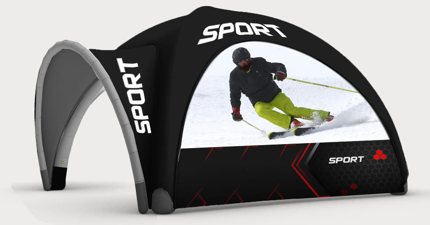 Individuell bedruckte, aufblasbare Zelte sorgen für maximale Aufmerksamkeit. Und das ganz ohne Dauergebläse. Einmal aufgebaut steht das Promotionzelt stabil und beeindruckend bei Ihren Events oder Roadshows.